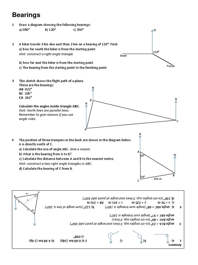 Web key stage 3, maths, bearings. Web learn how to calculate bearings between two points with this free pdf worksheet from maths4everyone. Simple bearings worksheet, with a starter main and extention. It includes answers as well as example problem 2 from above using trigonometry. Set your pupils on the right course with this supportive yet challenging bearings worksheet.