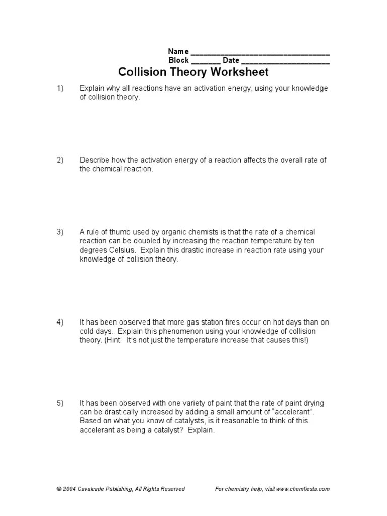 Concentration and rate of reaction; Web collision theory worksheet answer what are the three requirements for a reaction to continue? For a chemical reaction to occur, the reacting particles must collide with enough energy. In this worksheet, you will learn what chemists mean by collision theory, and how it. Web collision theory worksheet explain why all reactions have an activation.