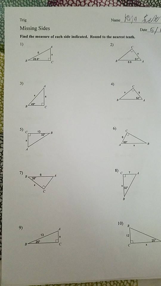 Finding Missing Sides With Trigonometry Worksheet Answers