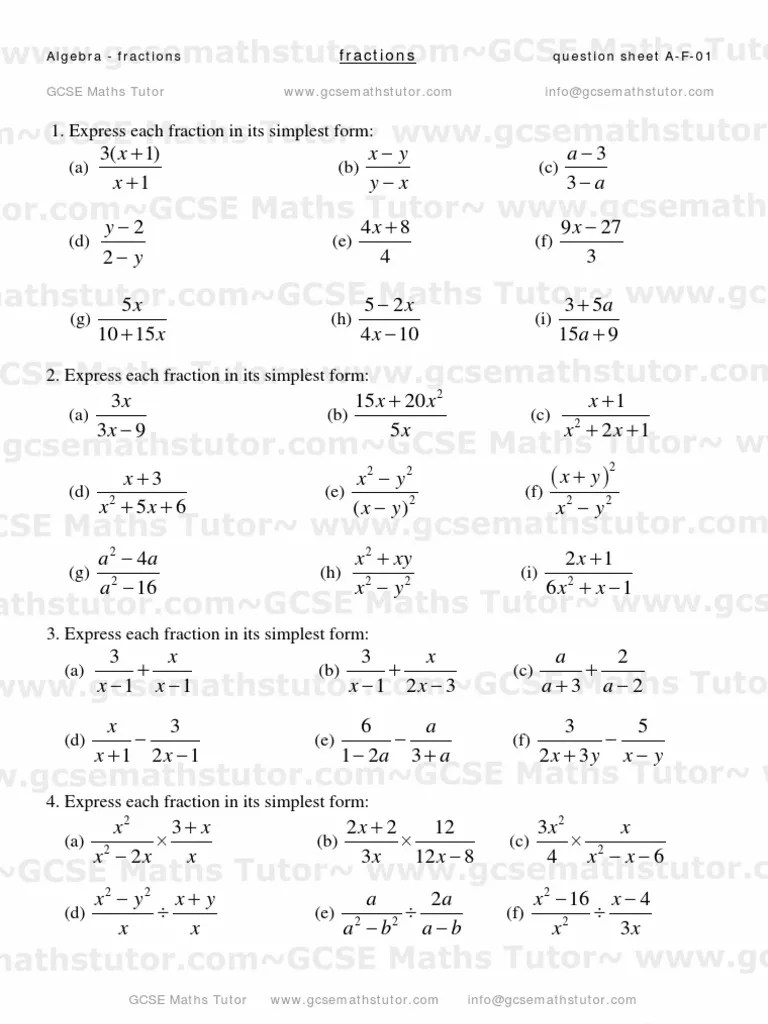 Web year 6 fractions worksheets. Web gcse revision (fractions: Web help your students prepare for their maths gcse with this free simplifying algebraic fractions worksheet of 30+ questions and. Adding, subtracting, dividing, multiplying, algebra, fractions.