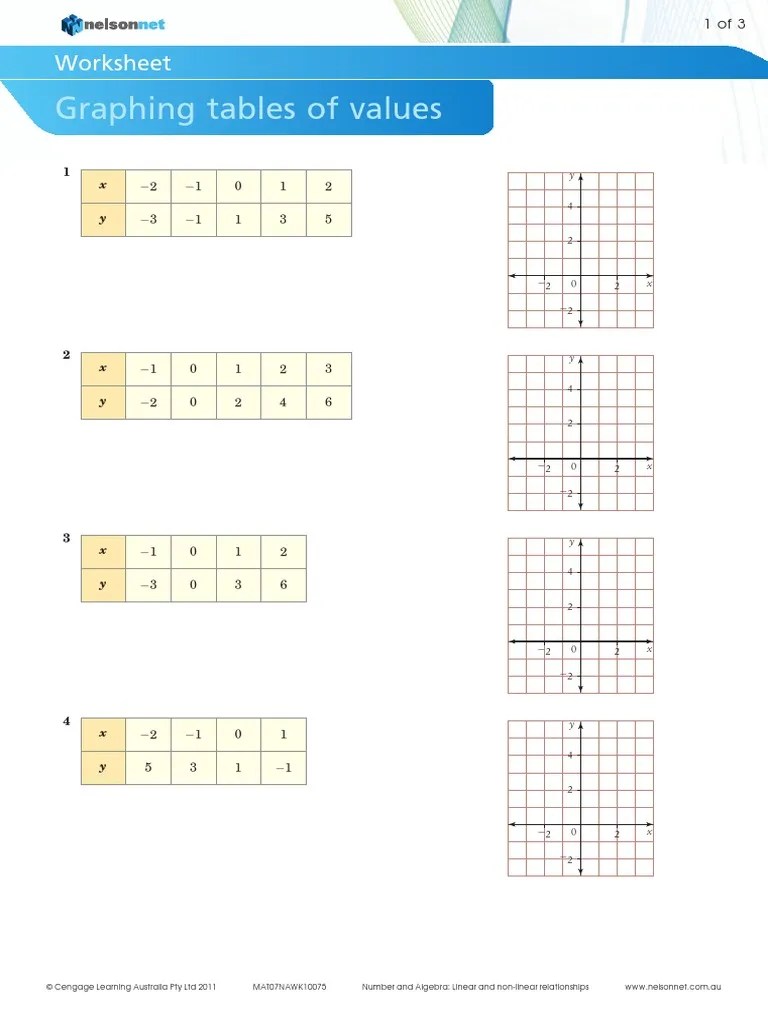 Graphing Linear Equations Using A Table Of Values Worksheet Pdf worksheet