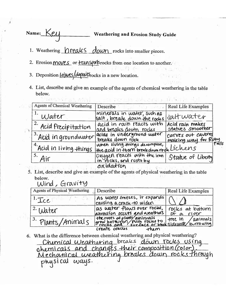 Weathering and Erosion Study Guide Answer Key PDF